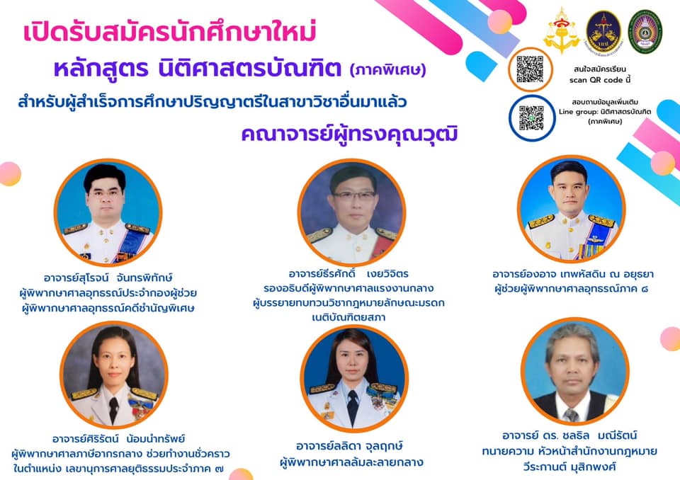 Application for New Students Bachelor of Laws Program (Special Program) For graduates who have completed a bachelor's degree, they can study and study for only 2 and a half years, start applying from now on by scanning the QR code into the group to apply and recruiting https://student.mytcas.com/th regular students for the third round (Admission 1), starting from May 7 - 15, http://admission.ssru.ac.th/ 2021