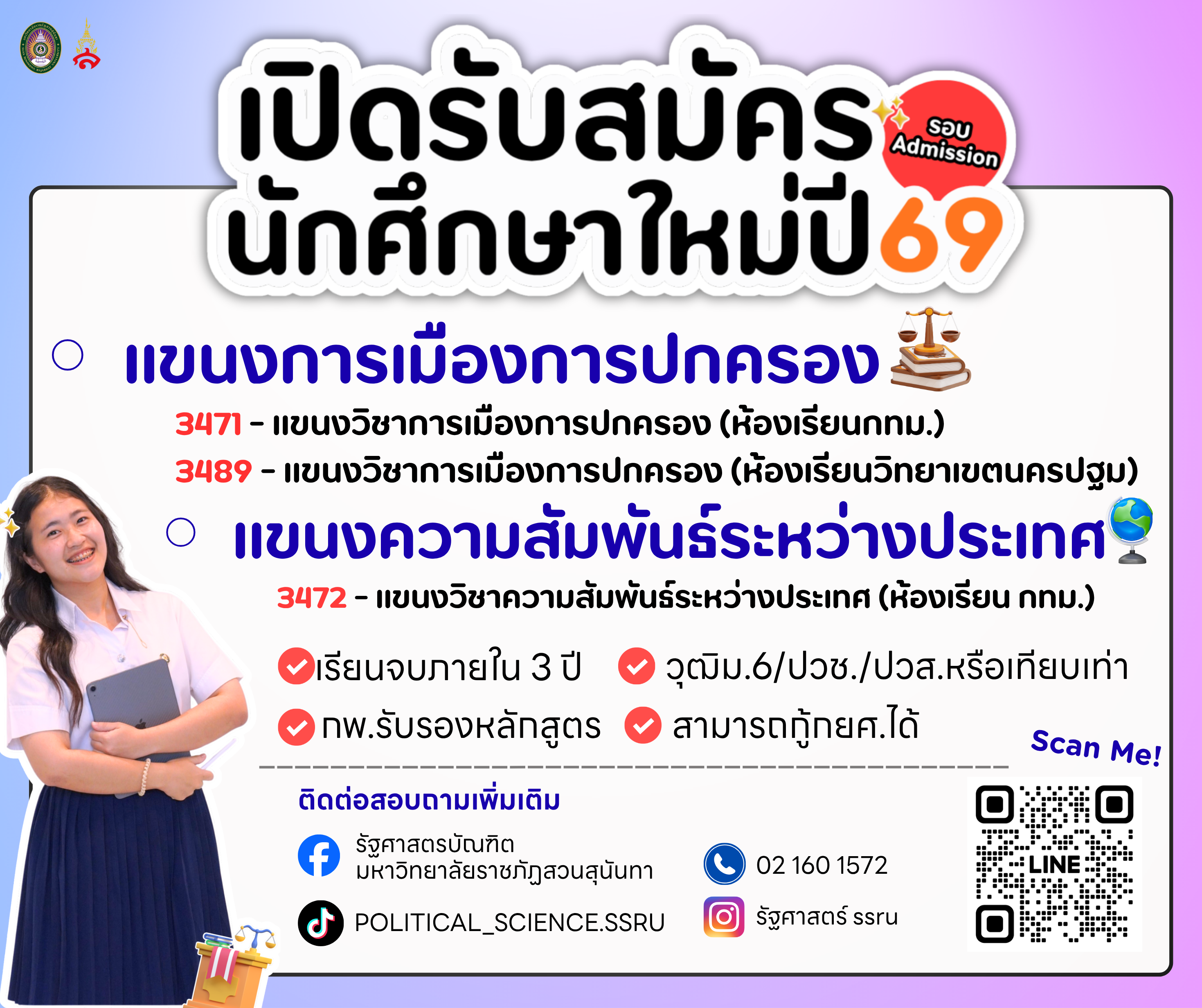 Open for Applications – Academic Year 2026 (Admission Round) Bachelor of Political Science Program Suan Sunandha Rajabhat University