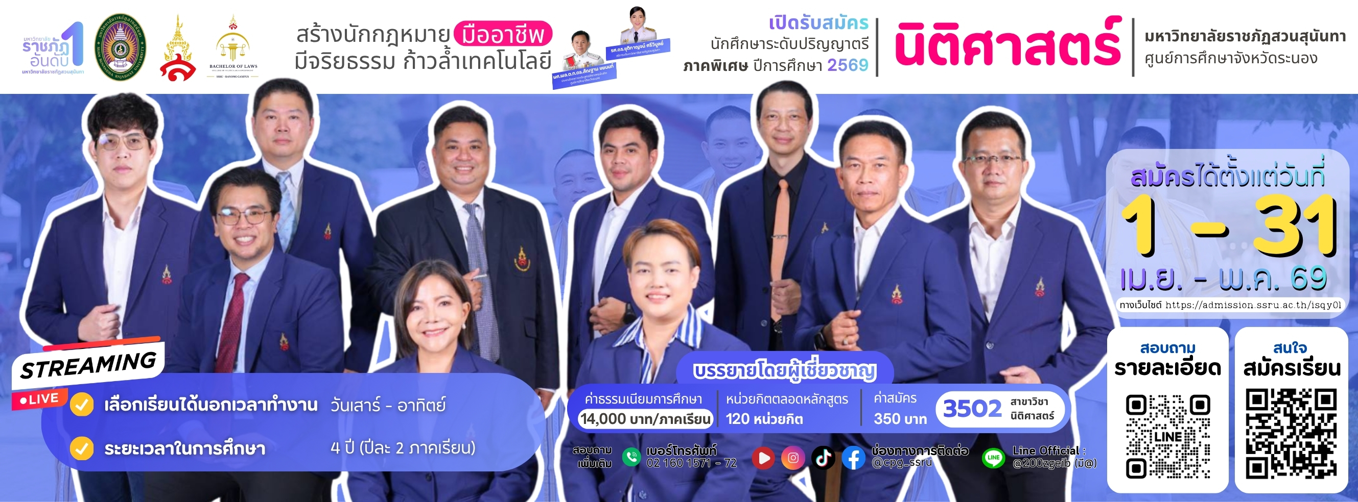 The Bachelor of Laws Program at Suan Sunandha Rajabhat University is now accepting applications for new students for the Bachelor of Laws Program (Special Program), Academic Year 2026.