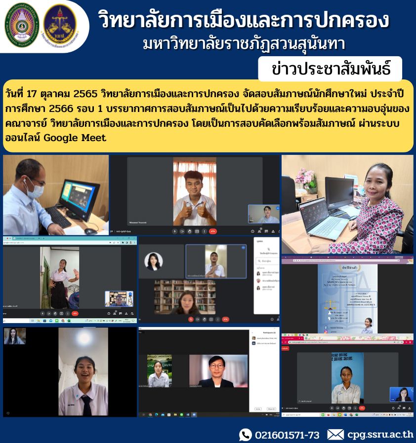 October 17, 2022 College of Politics and Governance Arrange interviews for new students For the academic year 2023, round 1, the atmosphere of the interviews is in order and the warmth of the faculty members. College of Politics and Governance This is a qualifying examination with an interview. through online.
