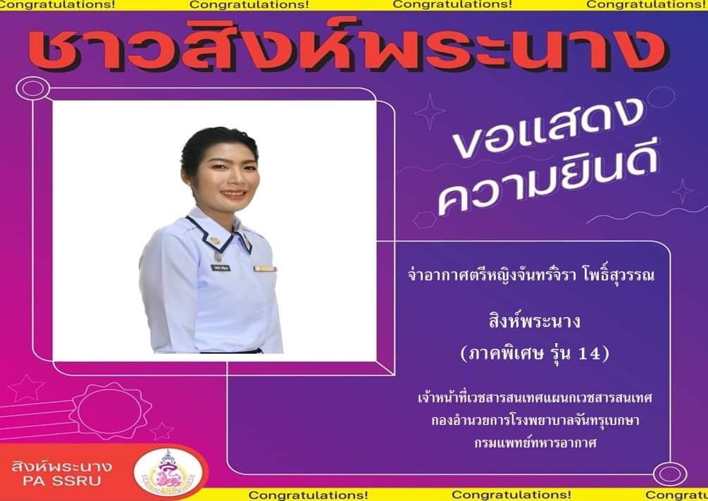 Congratulations to Air Chief Marshal Janjira Phosuwan (Phi Mew) Sing Phranang, Special Part, Class 14, who has been placed in the position. Medical Informatics Officer, Department of Medical Informatics Chantharubeksa Hospital Administrative Division Royal Thai Air Force Medical Department.