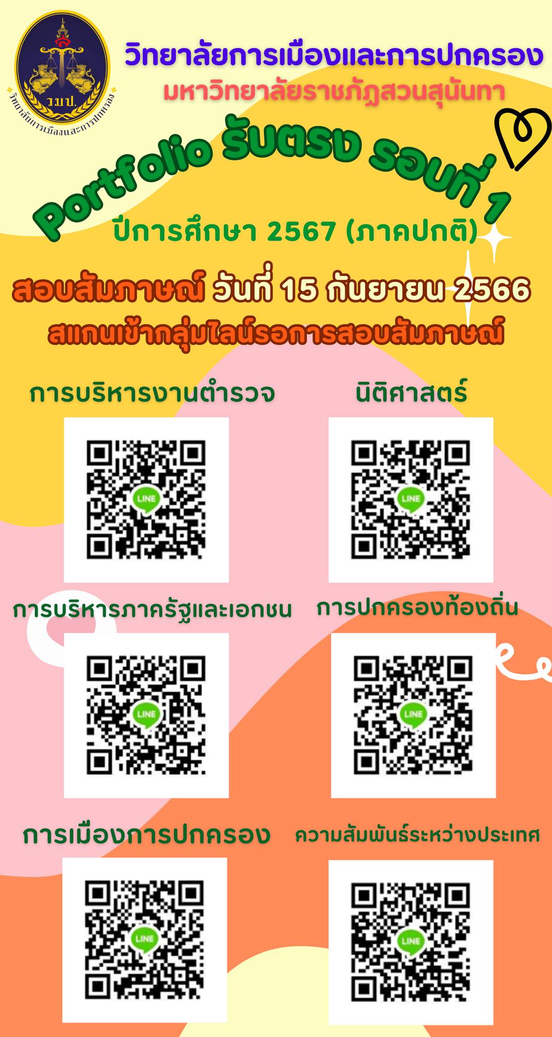 Or ask for more details ☎️ 02-160-1571-3 (Educational Services Department College of Politics and Administration) or College of Politics and Administration page Suan Sunandha Rajabhat University