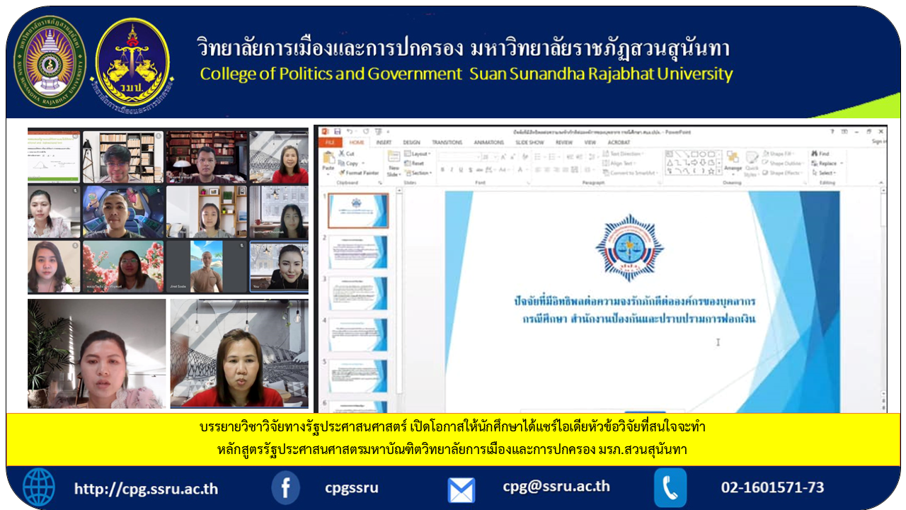 Public Administration Research Lecture Provide opportunities for students to share ideas on research topics that they are interested in completing the Master of Public Administration program at the School of Politics and Governance. Suan Sunandha Security Guard.