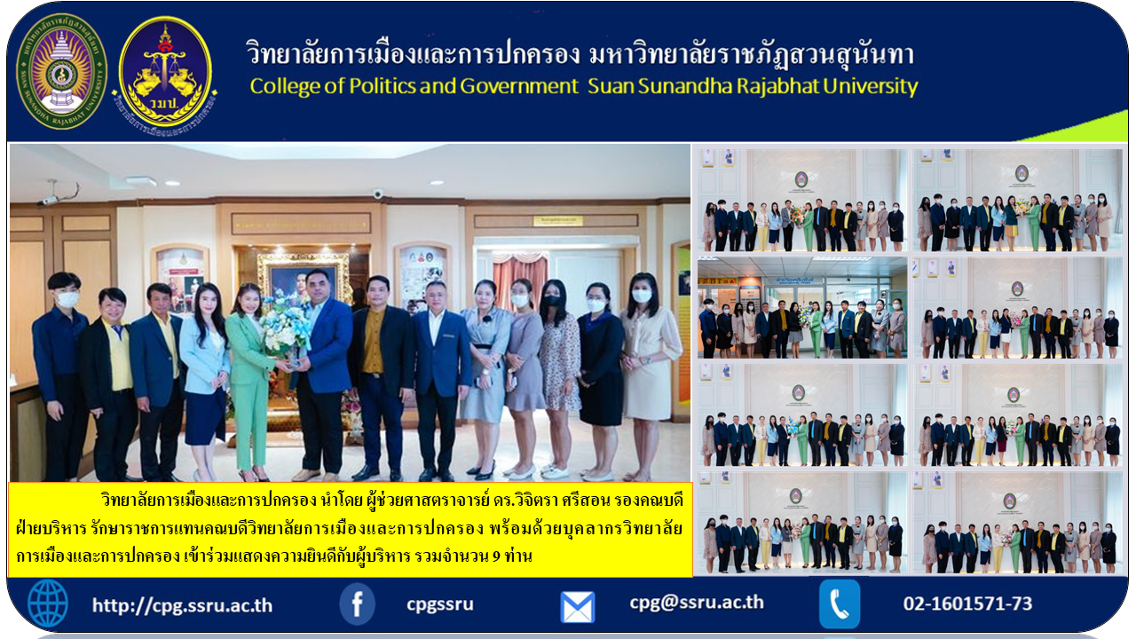 College of Politics and Governance, led by Assistant Professor Dr. Wijitra Srison, Deputy Dean for Administration. Acting Dean of the College of Politics and Government along with personnel from the College of Politics and Government Joined in congratulating a total of 9 administrators, including .