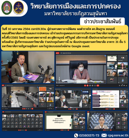 On January 10, 2022 at 09.30, Assistant Professor, Lieutenant General Dr. Santhan Chayanon, Dean of the College of Politics and Administration Attended the Executive Committee Meeting of Suan Sunandha Rajabhat University No. 1/2565.
