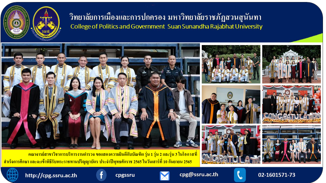 Faculty of Police Administration Department Congratulations to the Class 1, Class 2 and Class 3 graduates on the occasion of their graduation. and will attend the graduation ceremony Year 2022 on Saturday, September 10, 2022.