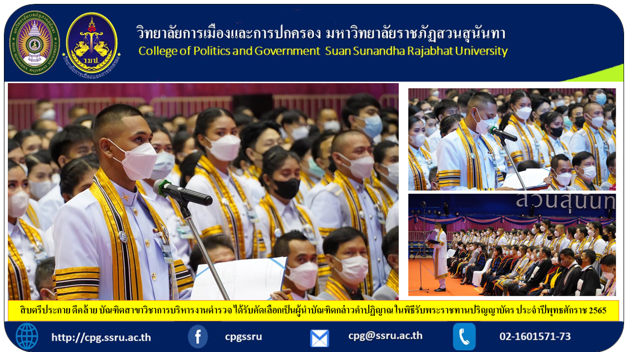 Sergeant Major Prakai Deklai, a graduate of the Department of Police Administration. Selected as a leader of graduates to take the oath at the graduation ceremony Year of the Buddhist Era 2022.