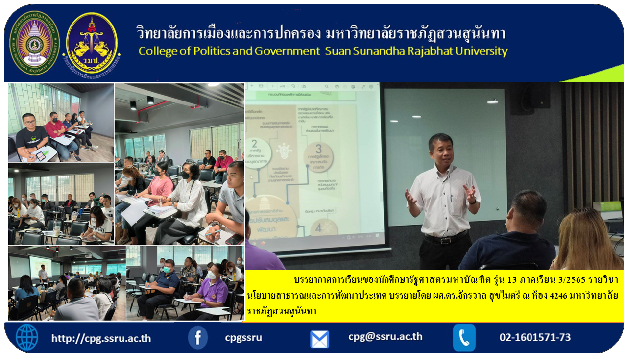 Study atmosphere of Master of Political Science students, Class 13, Semester 3/2022, Public Policy and National Development Course, lectured by Asst. Prof. Dr. Jakrawan Sukmaitri, at Room 4246, Suan Sunandha Rajabhat University.