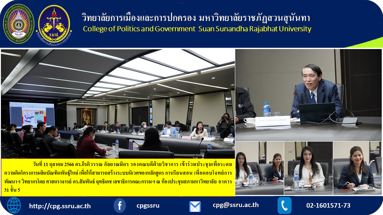October 11, 2023 Dr. Keeratiwan Kalayanamit, Deputy Dean for Academic Affairs Attended a meeting to brainstorm ideas for a project to produce a new breed of graduates. In order to be able to create an ecosystem of curriculum and teaching to meet development needs, the lecture was given by Professor Dr. Samphan Ritthidet, Secretary-General of the Committee, at the University Council meeting room, Building 31, 5th floor.