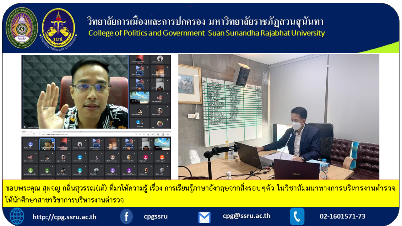 Thank you Supachon Klinsuwan (Te) for giving us knowledge about learning English from things around us. in the seminar on police administration for students in the field of police administration.