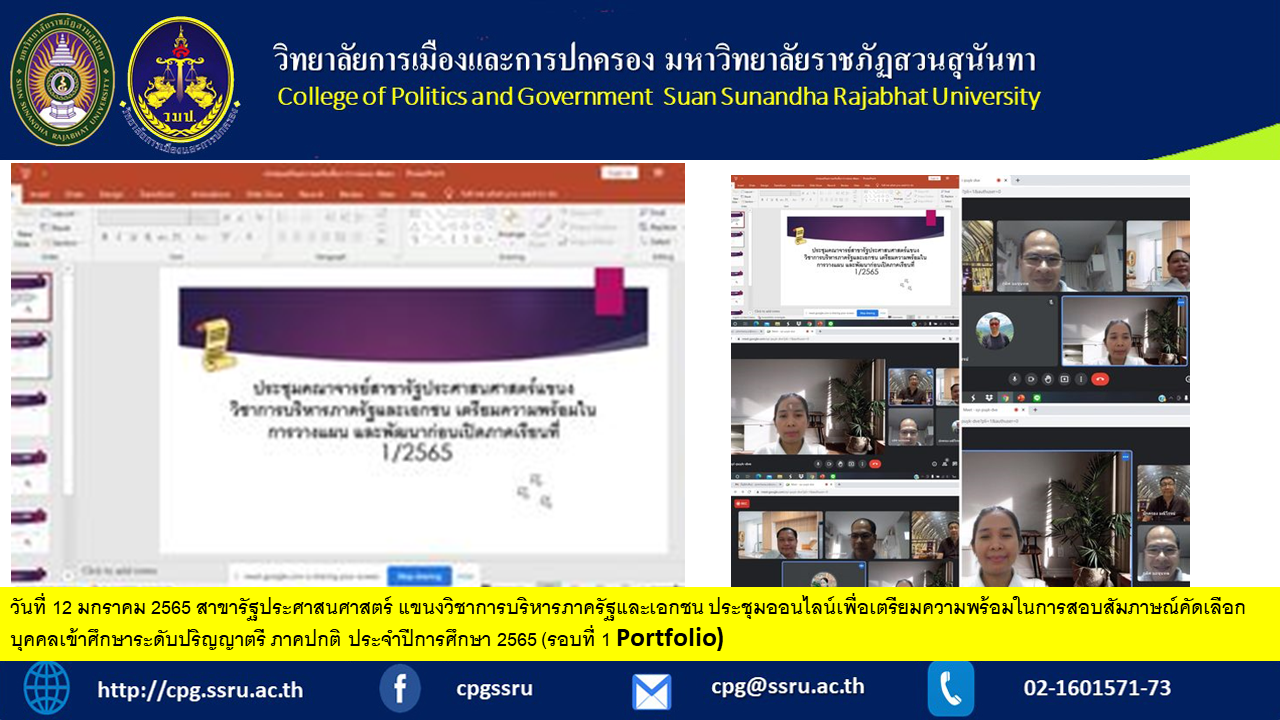 On January 12, 2022, online meeting in Public Administration in the field of public and private administration to prepare for the interview for the selection of persons entering the bachelor's degree, regular term, academic year 2022 (Round 1 Portfolio).