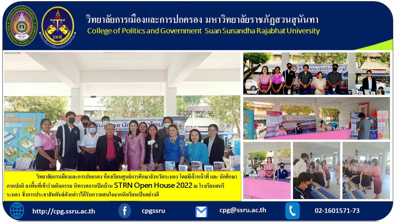 Tuesday, February 14, 2023 at 9:00 a.m. College of Politics and Governance Ranong Education Center Classroom with staff and regular students visiting the area to participate in the activities STRN Open House 2022 at Satri Ranong School Which such public relations received good attention from students. Apply for regular classes today and receive special privileges. Receive scholarships, reduce tuition fees, everyone 85,00 baht per semester until graduation. For more information, please contact the page message and Line ID.