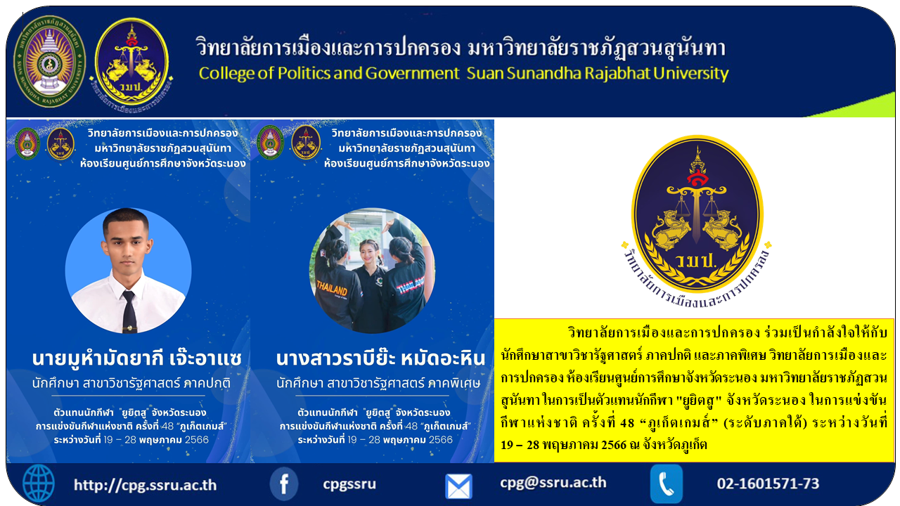 Cheering up for students in political science, regular and special programs, College of Politics and Government Ranong Education Center Classroom Suan Sunandha Rajabhat University in representing "Jiu-Jitsu" athletes, Ranong province in the 48th National Games "