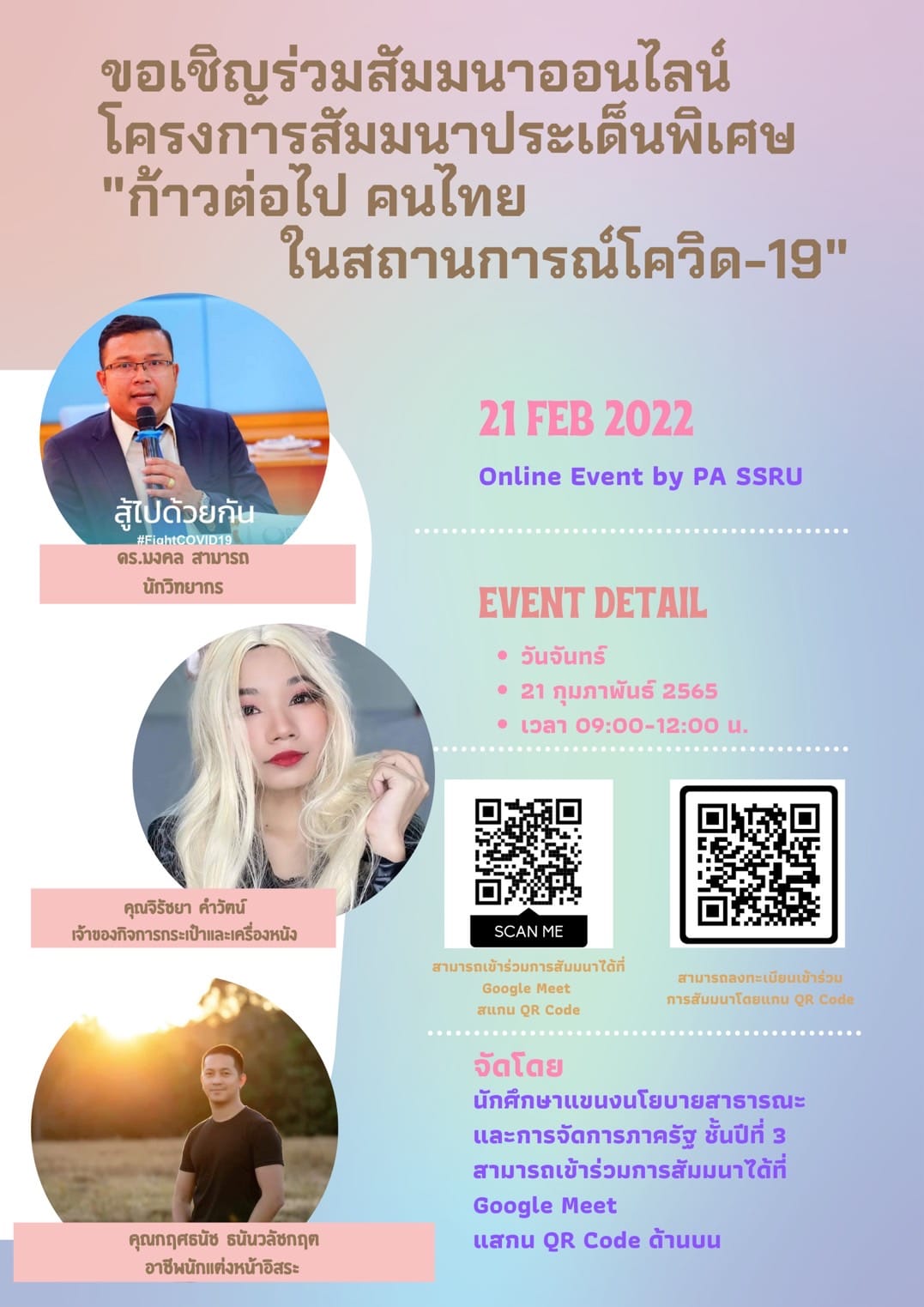 Those who are interested in attending the seminar can register to participate in the event by scanning the Qr Code. If you have any further questions, you can contact the page Sing Phra Nang PA SSRU or phone number. 094-8156556