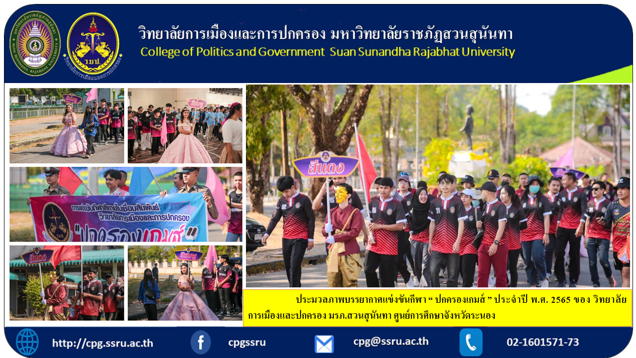 A collection of pictures of the atmosphere of the 2022 “Government Games” sports competition of the College of Politics and Governance Suan Sunandha Rajabhat University Ranong Education Center.