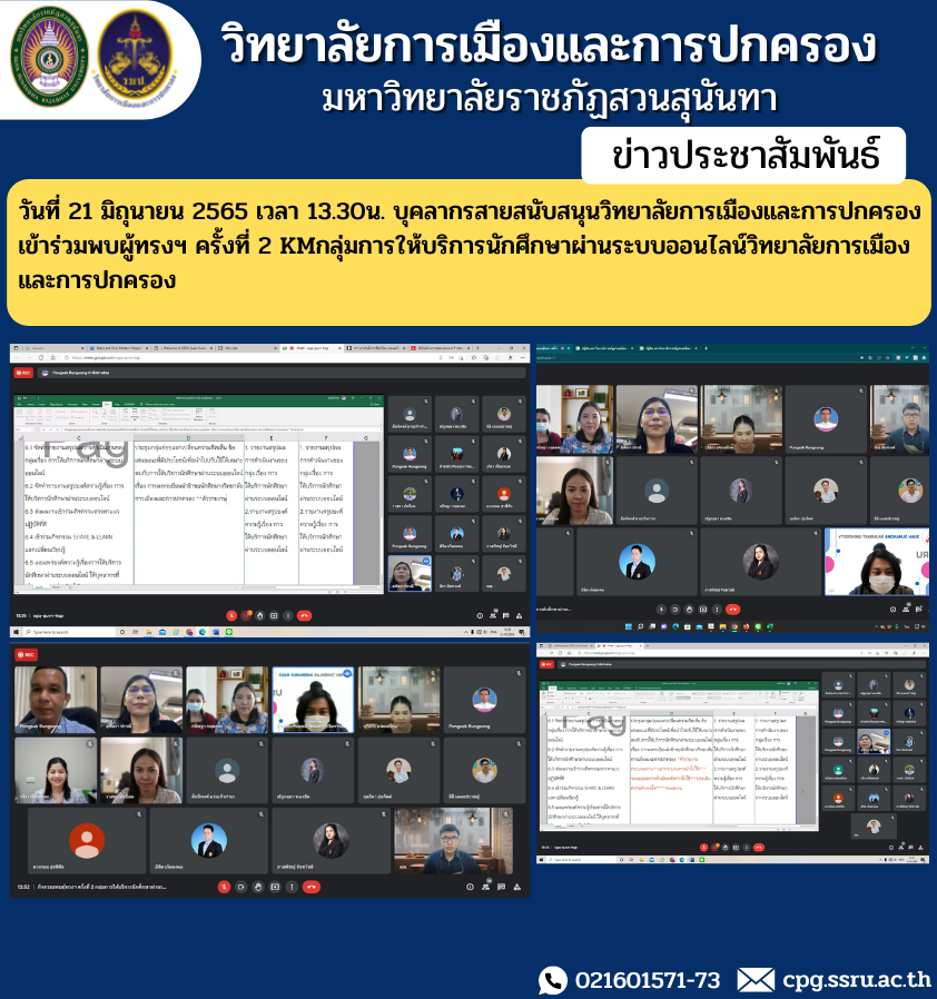 On June 21, 2022 at 1:30 p.m. Personnel in support of the College of Politics and Administration Join to meet the monks for the 2nd time KM Student service group via online system College of Politics and Governance.