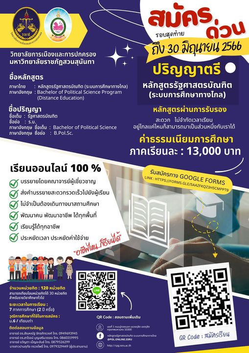 Bachelor of Political Science Program (Distance Education System) College of Politics and Government Suan Sunandha Rajabhat University.
