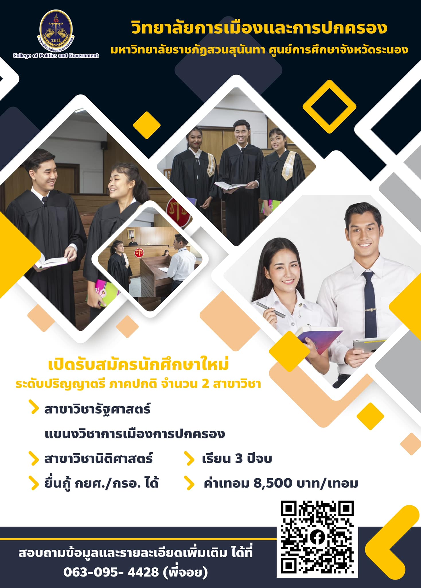 College of Politics and Governance Suan Sunandha Security Guard Ranong Provincial Education Center Open for new students, regular semester, bachelor's degree Academic Year 2022 (Round 4 Direct Admission)