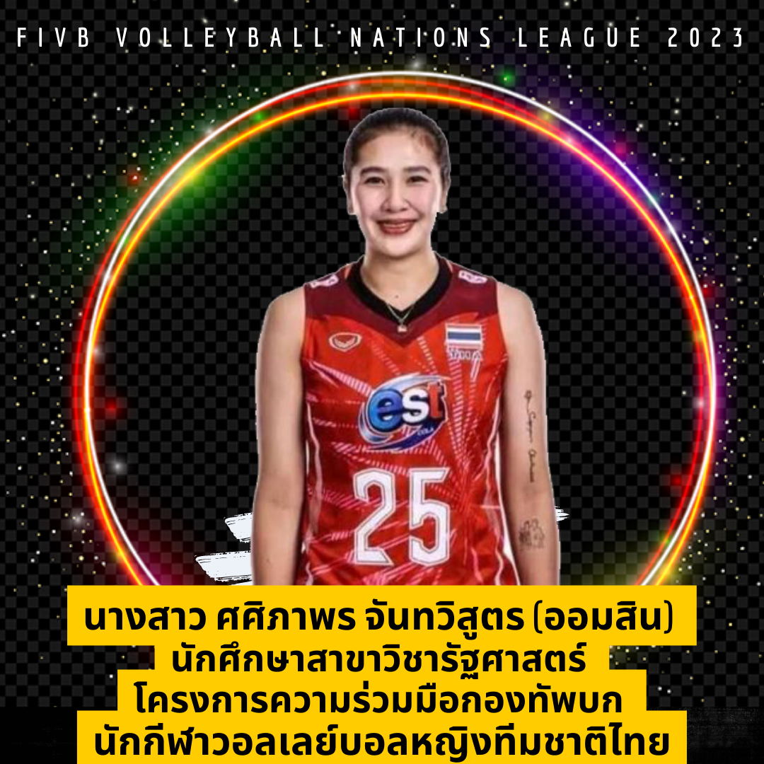 The Student Affairs Department and the Student Club would like to send encouragement and encouragement to Ms. Sasipaporn Chanthawisut (Aomsin), a political science student. Army Cooperation Program Thai women's national volleyball team Participate in the FIVB Volleyball Nations League 2023 (Week 1) in Turkey. Between May 30 - June 4, 2023.