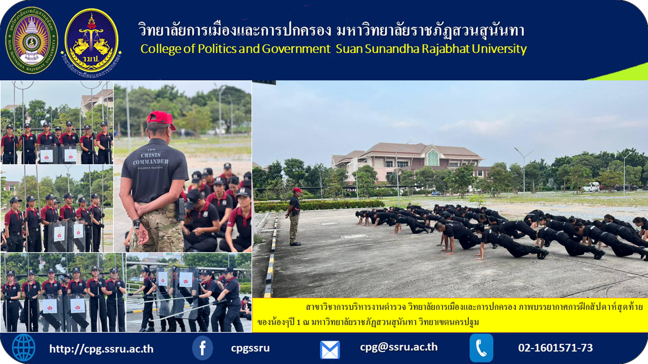 สาขาวิชาการบริหารงานตำรวจ วิทยาลัยการเมืองและการปกครอง ภาพบรรยากาศการฝึกสัปดาห์สุดท้ายของน้องๆปี 1 ณ มหาวิทยาลัยราชภัฏสวนสุนันทา วิทยาเขตนครปฐม
