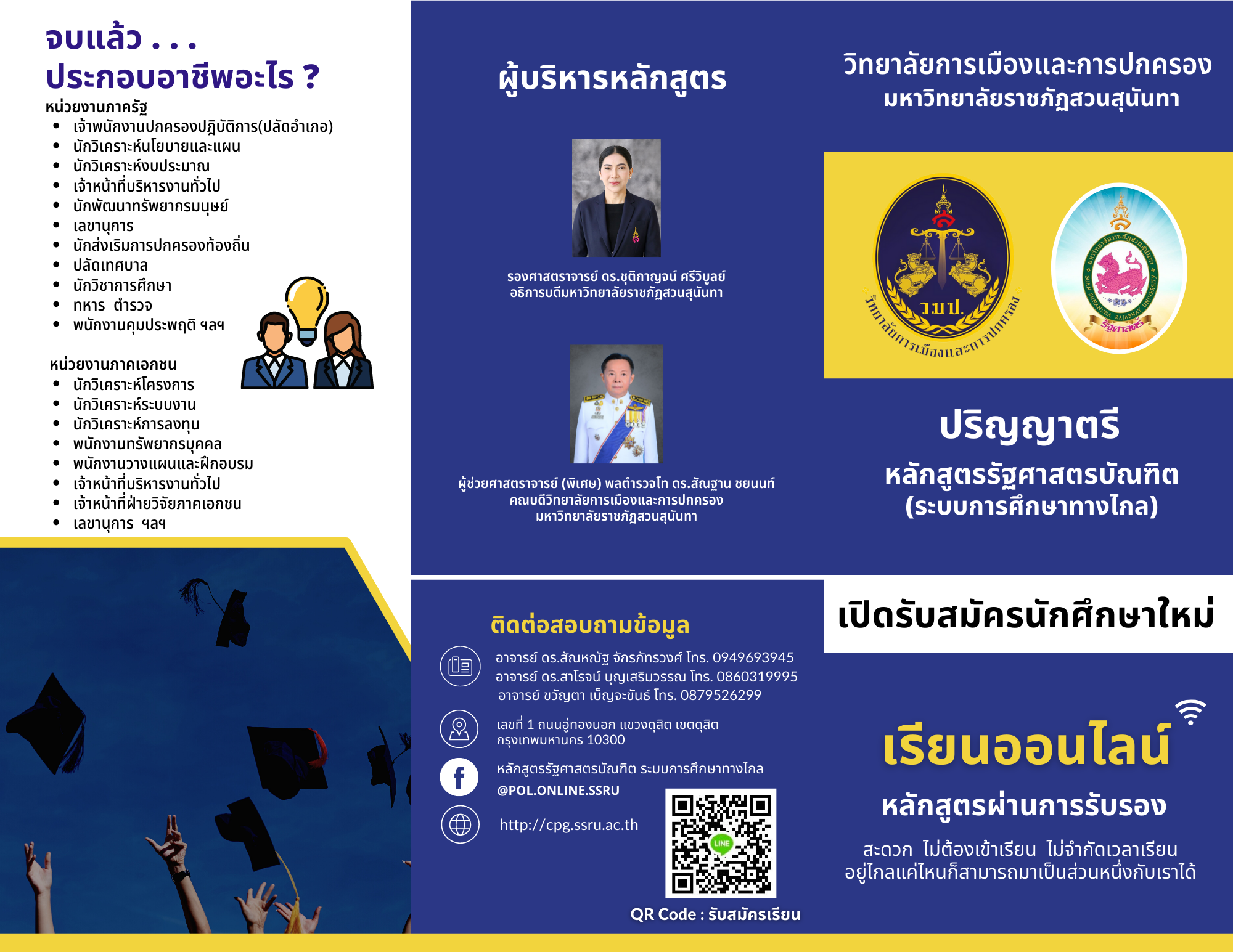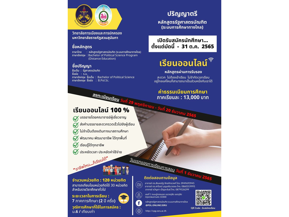 ติดต่อสอบถามได้ที่ เพจ https://www.facebook.com/POL.ONLINE.SSRU/
