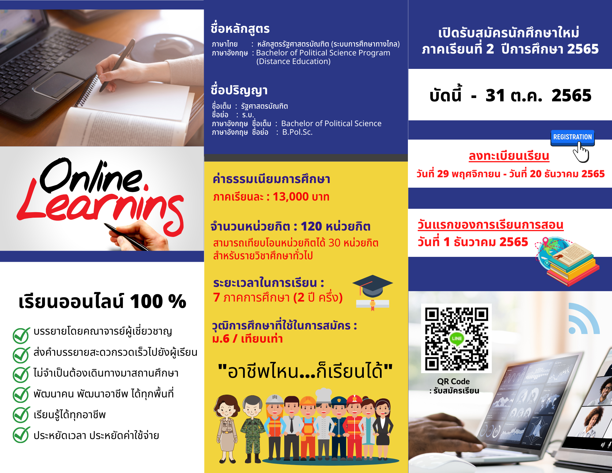 หน้าหลัก > ข่าว > ข่าวรับสมัครนักศึกษา > หลักสูตรรัฐศาสตรบัณฑิต ระบบการศึกษาทางไกล