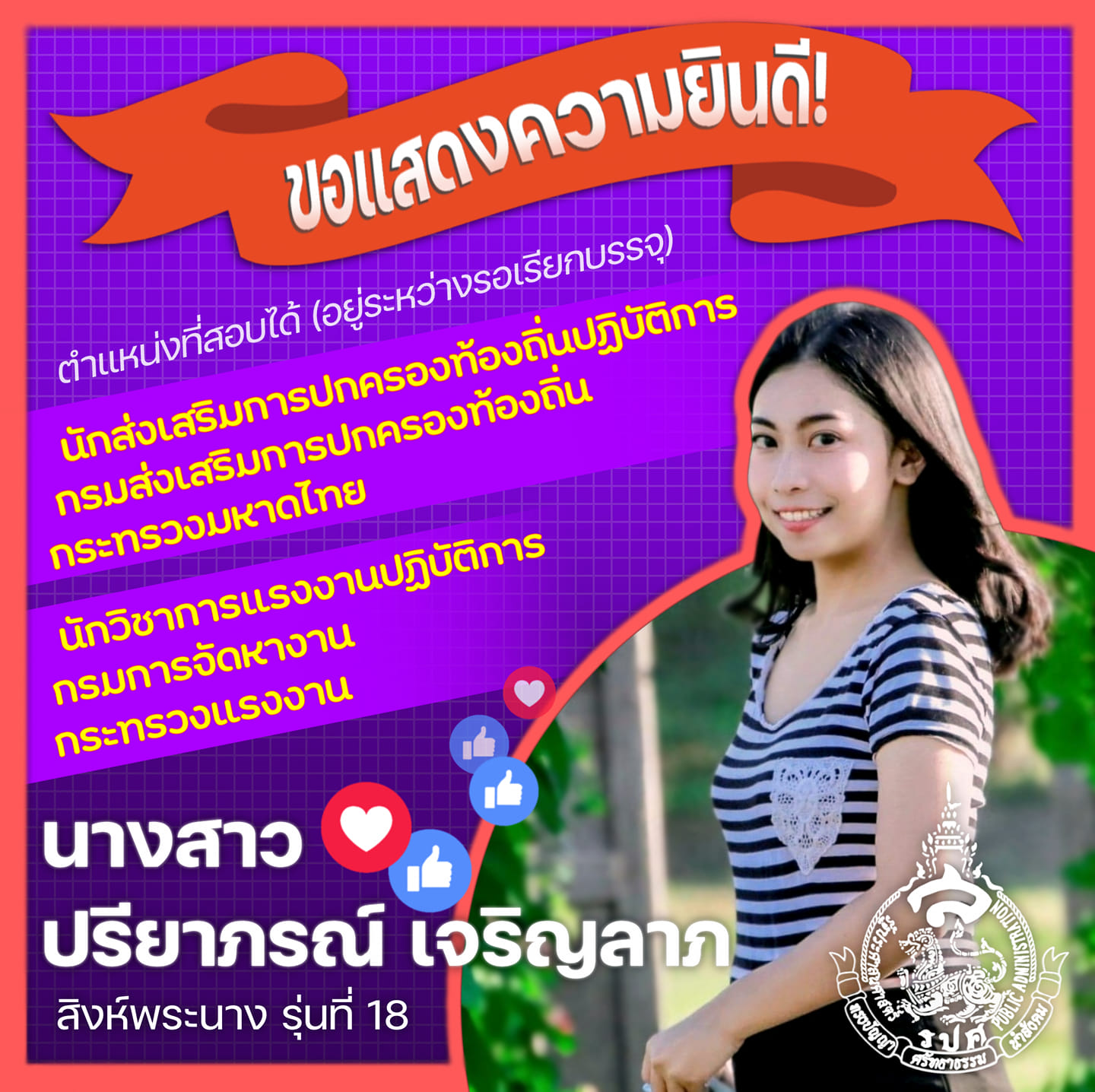 ขอแสดงความยินดีกับนางสาวปรียาภรณ์