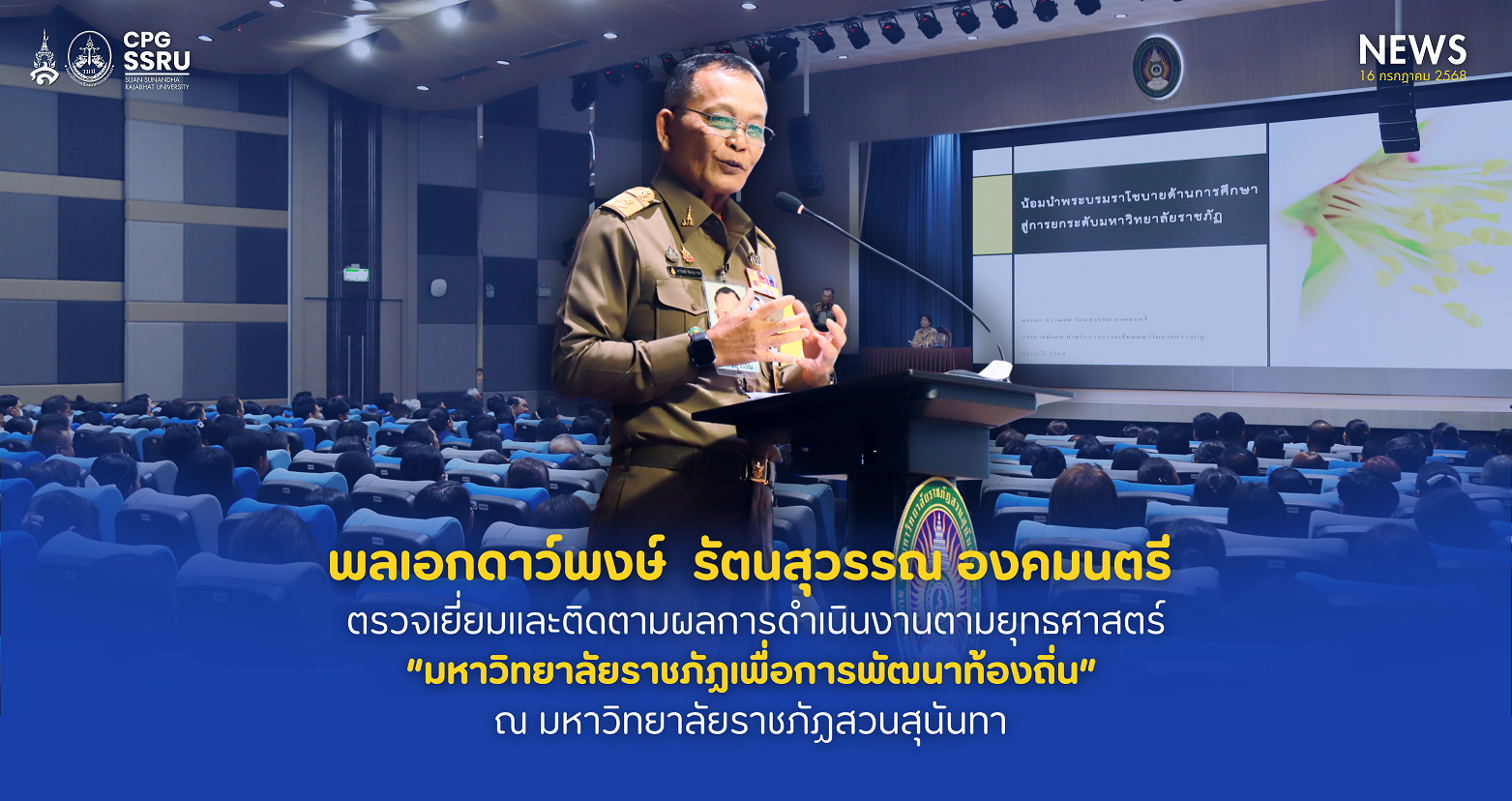 วันที่ 16 กรกฎาคม 2568 พลเอกดาว์พงษ์ รัตนสุวรรณ องคมนตรี เดินทางตรวจเยี่ยมและติดตามผลการดำเนินงานตามยุทธศาสตร์ “มหาวิทยาลัยราชภัฏเพื่อการพัฒนาท้องถิ่น” ณ มหาวิทยาลัยราชภัฏสวนสุนันทา กรุงเทพฯ โดยได้รับการต้อนรับจากคณะผู้บริหาร คณาจารย์ บุคลากร และนักศึกษาอย่างอบอุ่น