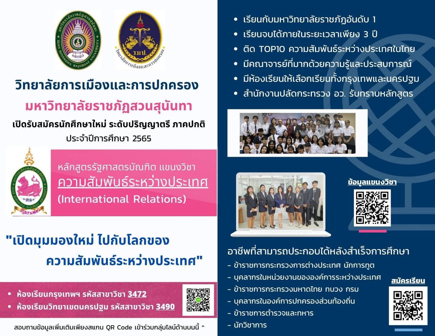 หลักสูตรรัฐศาสตรบัณฑิต แขนงวิชาความสัมพันธ์ระหว่างประเทศ (International Relations: IR)