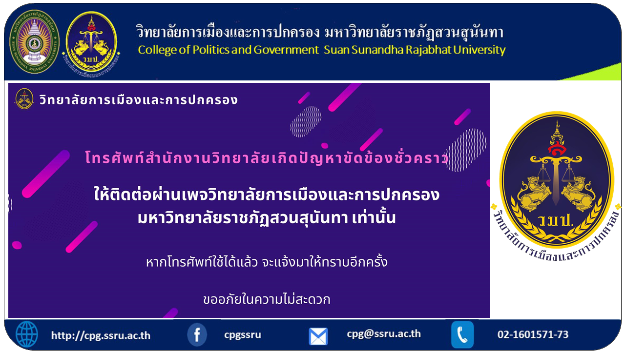 ประกาศจากวิทยาลัยการเมืองและการปกครอง มหาวิทยาลัยราชภัฏสวนสุนันทา
