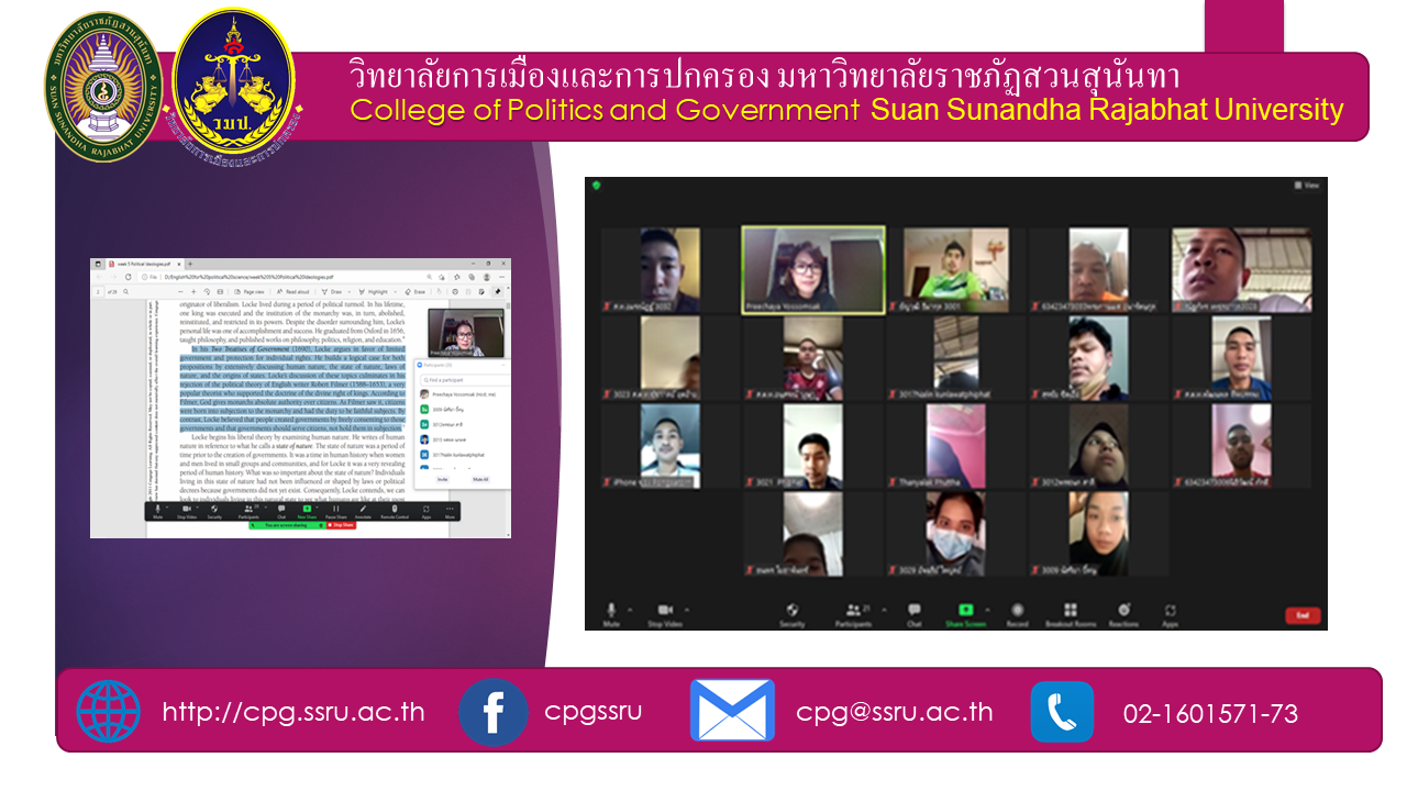 กิจกรรมการเรียนการสอนออนไลน์นักศึกษาภาคพิเศษบุคคลทั่วไป (ศูนย์การศึกษาระนอง) วิชาภาษาอังกฤษสำหรับรัฐศาสตร์ 1 POS3601