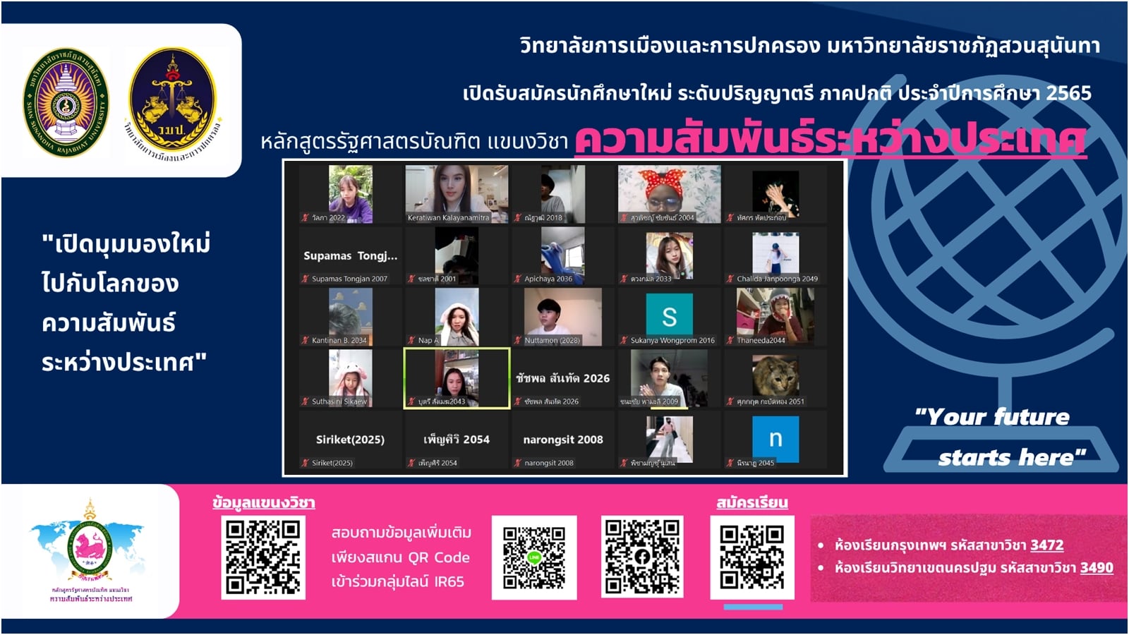 ภาพบรรยากาศการเรียนการสอนออนไลน์ แขนงวิชาความสัมพันธ์ระหว่างประเทศหลักสูตรรัฐศาสตรบัณฑิต ภาคปกติ ภาคเรียนที่ 2 ปีการศึกษา 2564