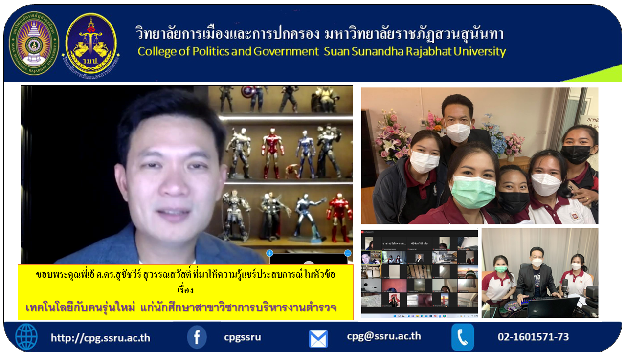 ขอบพระคุณพี่เอ้ ศ.ดร.สุชัชวีร์ สุวรรณสวัสดิ์ ที่มาให้ความรู้แชร์ประสบการณ์ ในหัวข้อเรื่อง เทคโนโลยีกับคนรุ่นใหม่ แก่นักศึกษาสาขาวิชาการบริหารงานตำรวจ