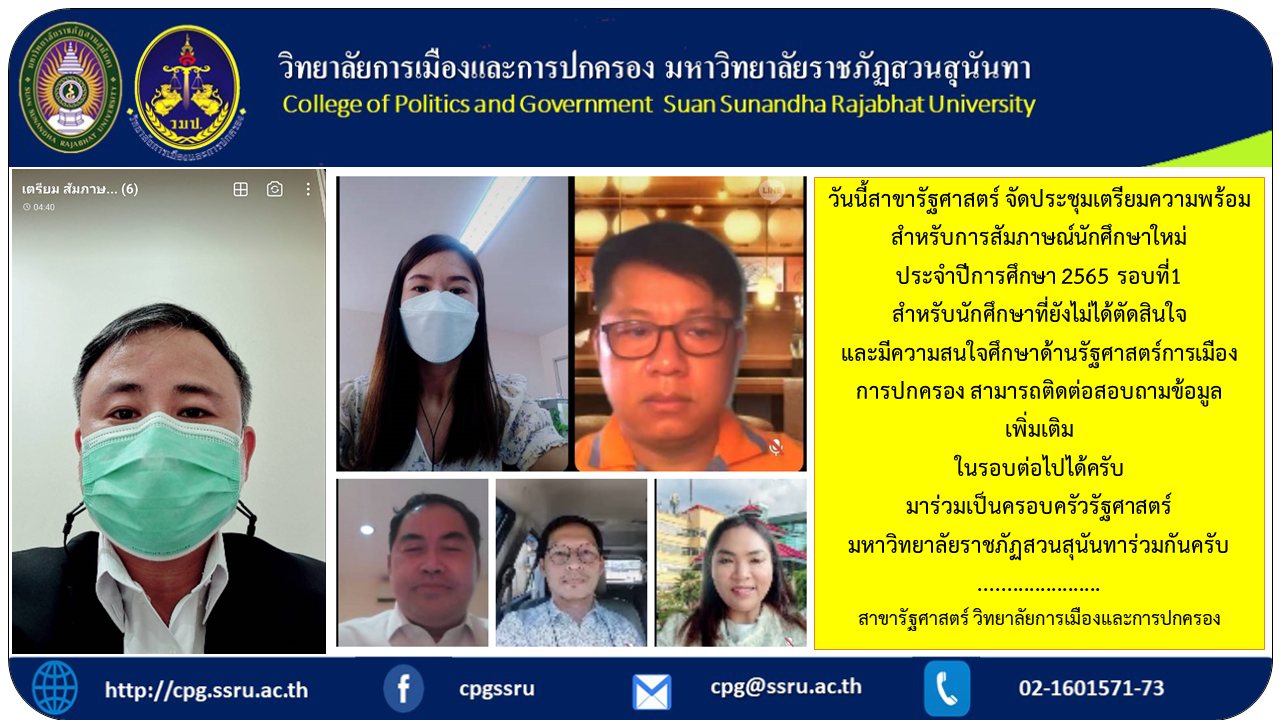 วันนี้ สาขารัฐศาสตร์ จัดประชุมเตรียมความพร้อม สำหรับการสัมภาษณ์ นักศึกษาใหม่ประจำปีการศึกษา 2565 รอบที่1