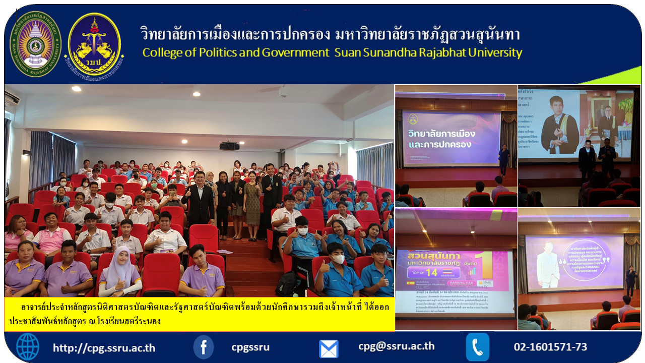 อาจารย์ประจำหลักสูตรนิติศาสตรบัณฑิตและรัฐศาสตร์บัณฑิตพร้อมด้วยนักศึกษารวมถึงเจ้าหน้าที่ ได้ออกประชาสัมพันธ์หลักสูตร ณ โรงเรียนสตรีระนอง