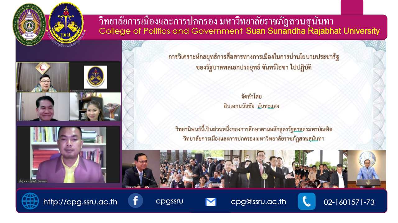 Facebook : https://www.facebook.com/cpgssru (วิทยาลัยการเมืองและการปกครอง มหาวิทยาลัยราชภัฏสวนสุนันทา)